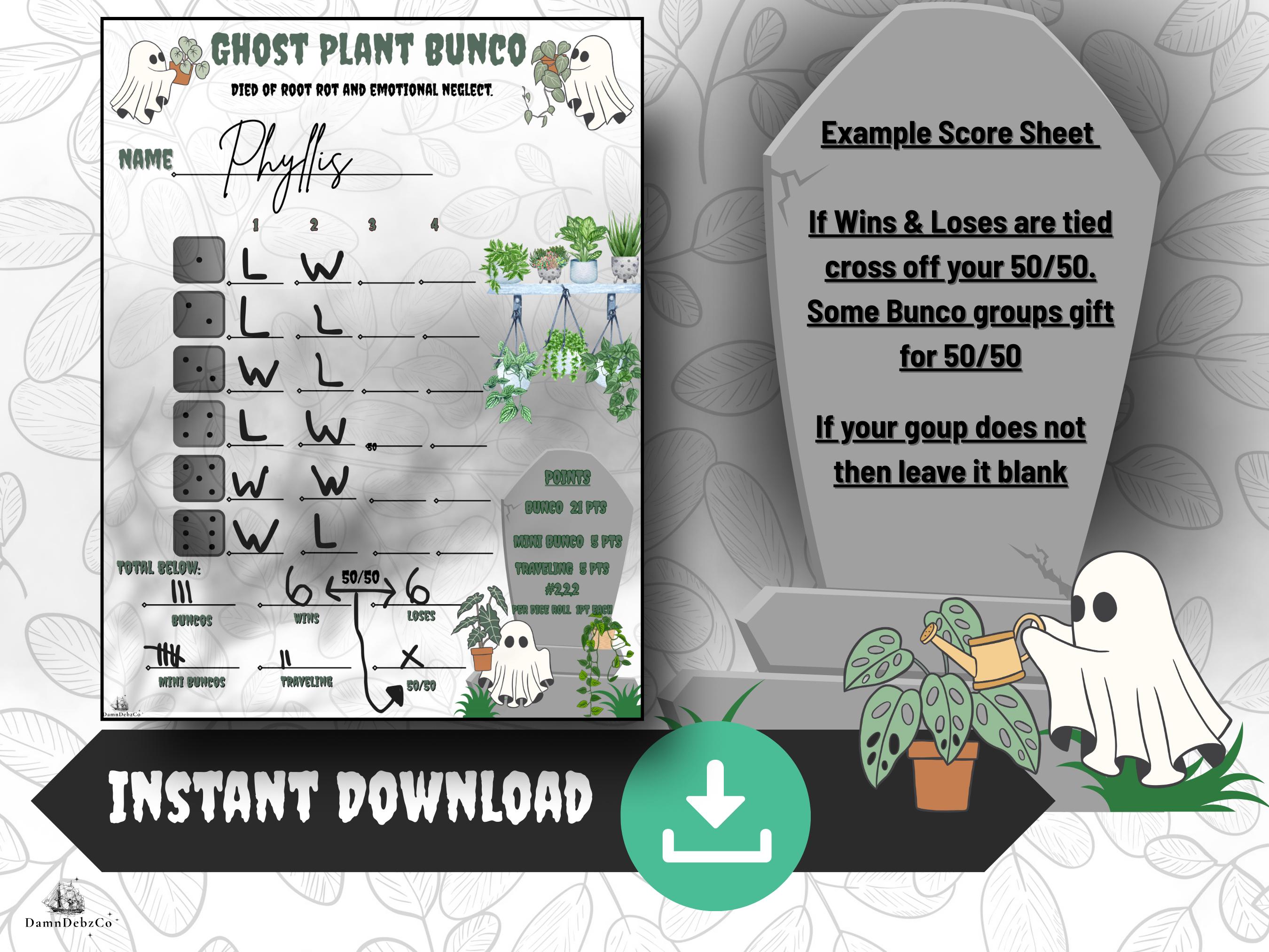 Ghost Plant Bunco Game Night Kit: Spooky Party Theme (Instant Download)