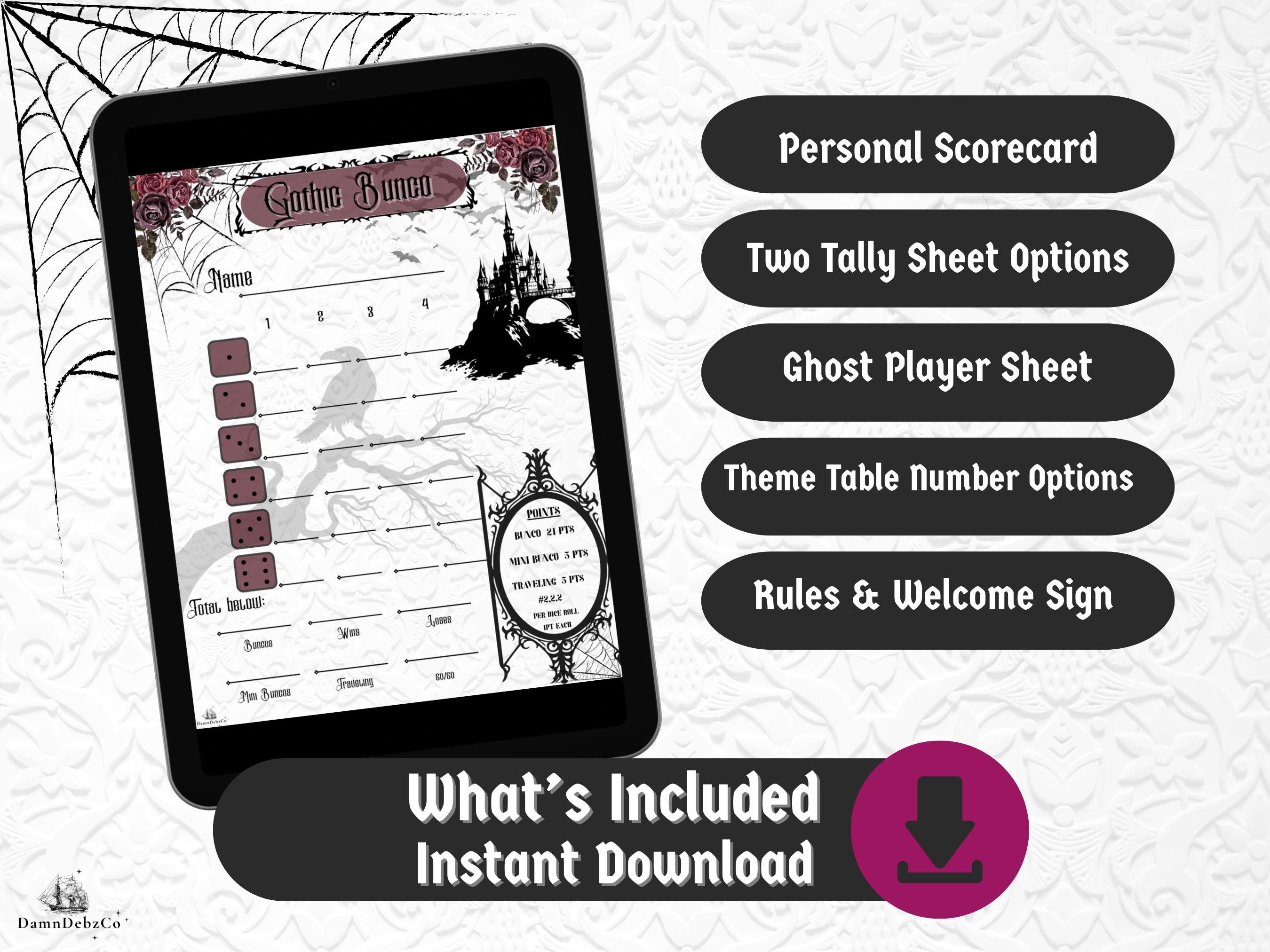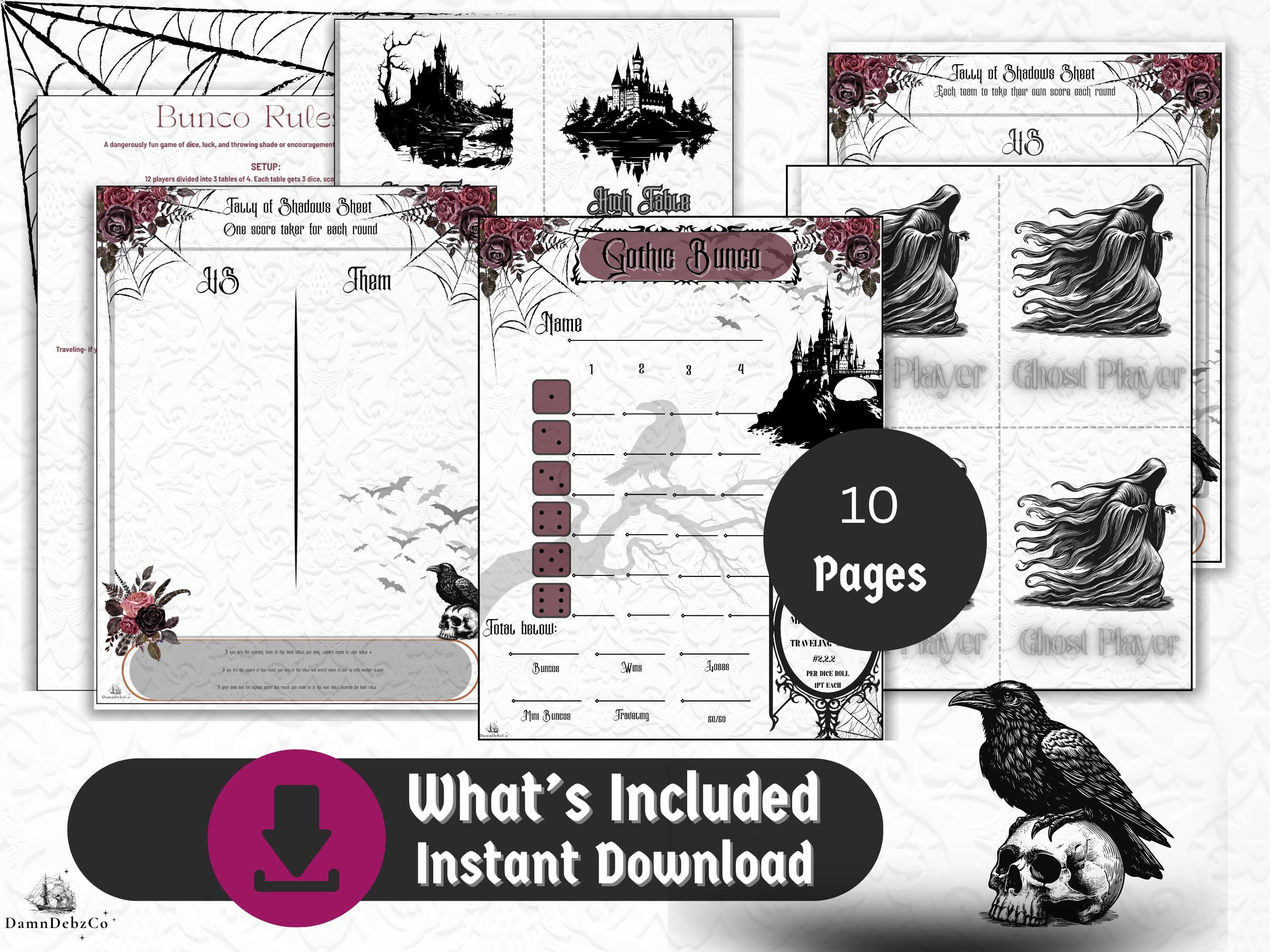 Whether you're throwing a Halloween party, a dark academia gathering, or just love all things spooky and stylish, this downloadable bundle brings eerie elegance to your Bunco night.
