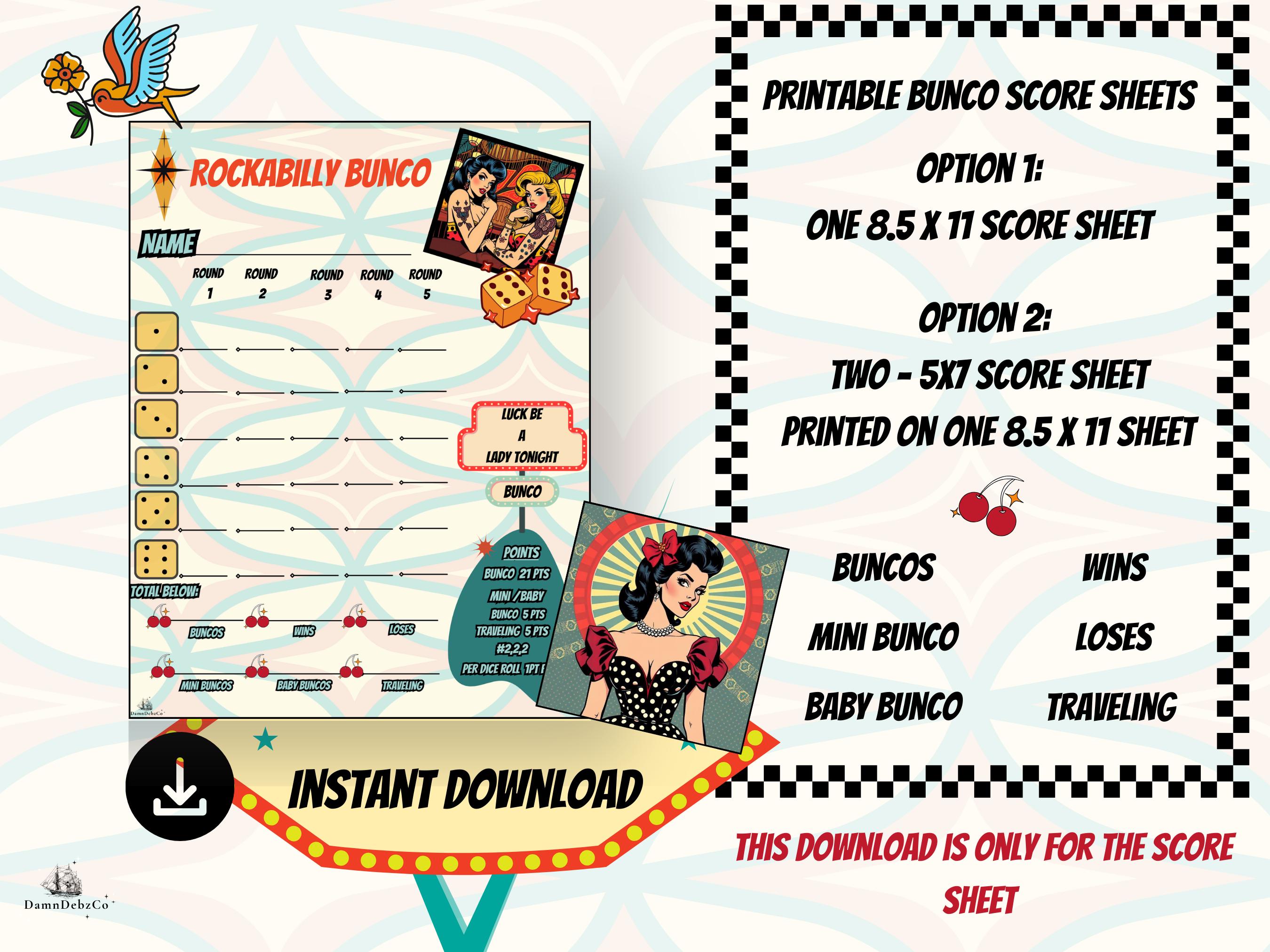 1950s Pin-Up Bunco Score Sheet: Retro Rockabilly Game (Instant Download)