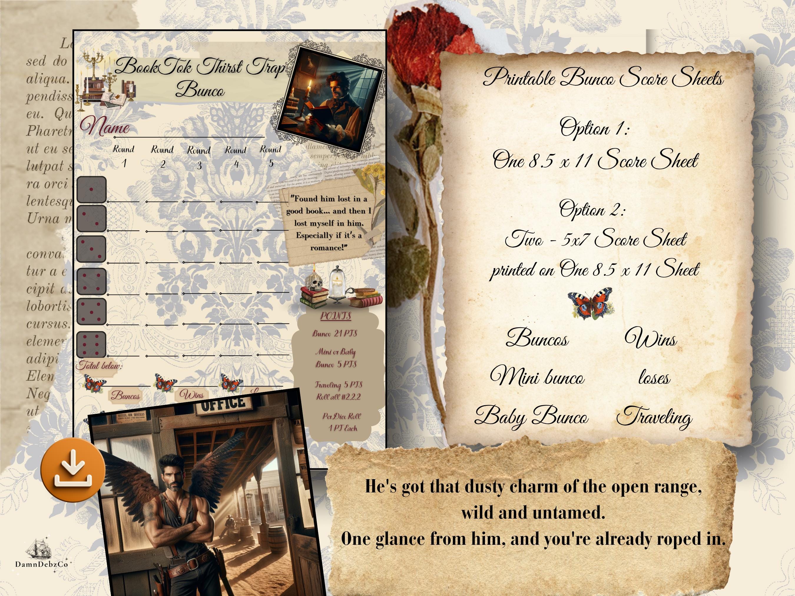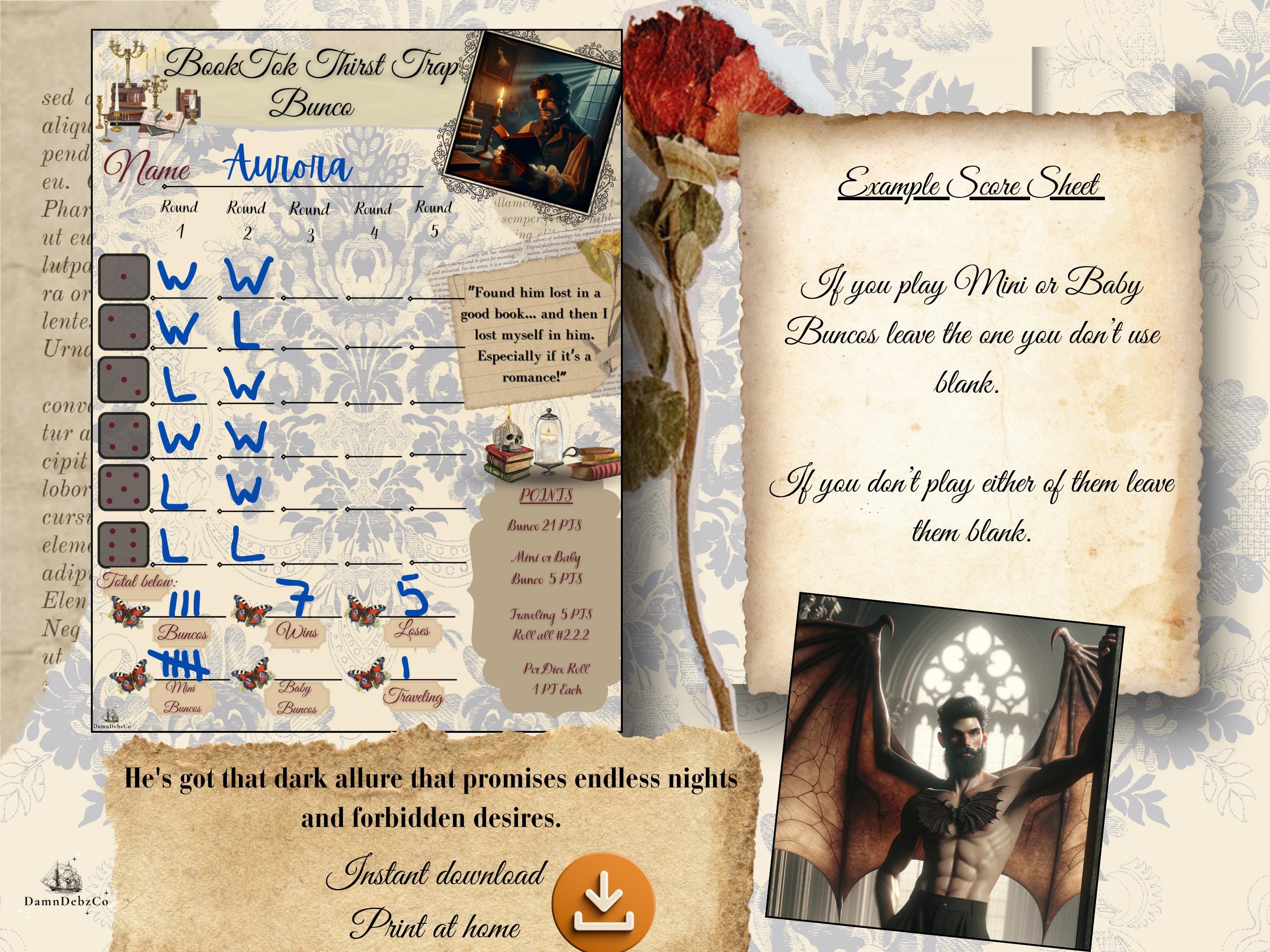 Tired of the same old game nights? Ready to dive into a world where your favorite book boyfriends come to life (at least in spirit!) and every dice roll feels like a thrilling plot twist? This BookTok Thirst Trap Bunco Score Sheet is your ultimate digital download for a night of captivating fun, laughter, and perhaps a little bit of swooning!