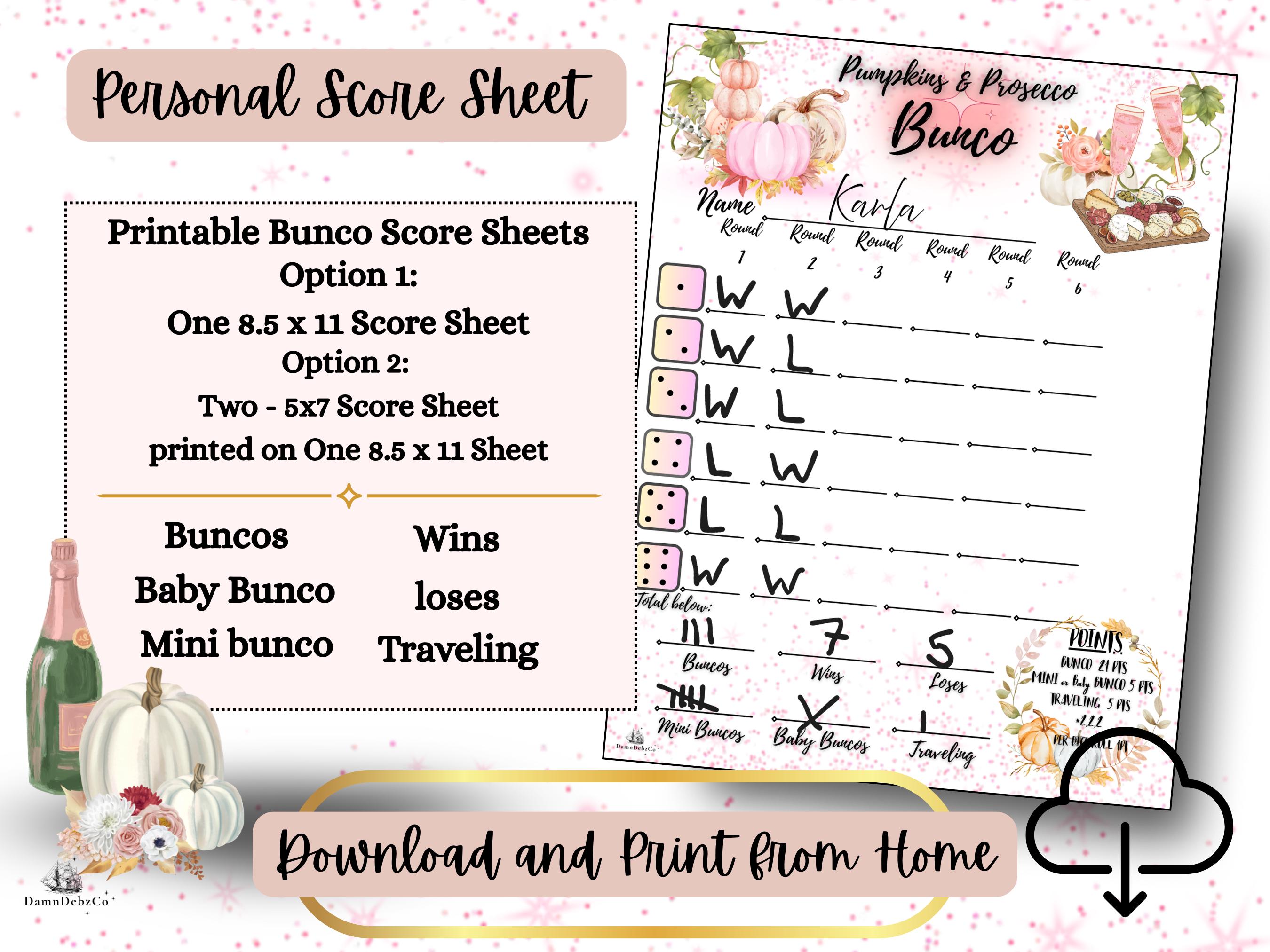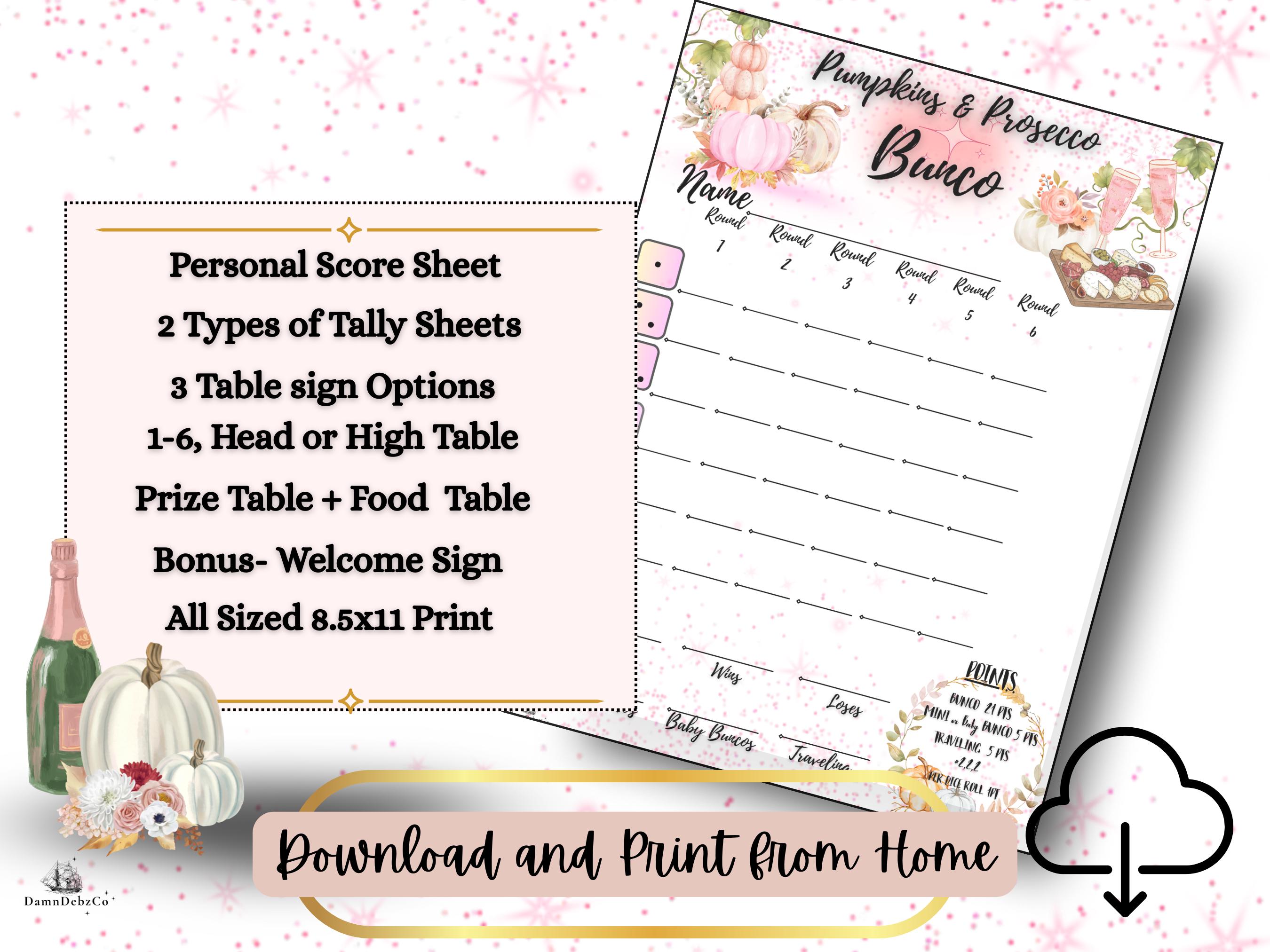 • Printable Pumpkins & Prosecco themed Bunco score sheet